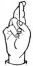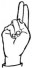 На ћирилици написано ХАНА КОСНИЋ састоји се из 10 слова [?]. Исписано ћириличном једноручном азбуком за глувонеме: